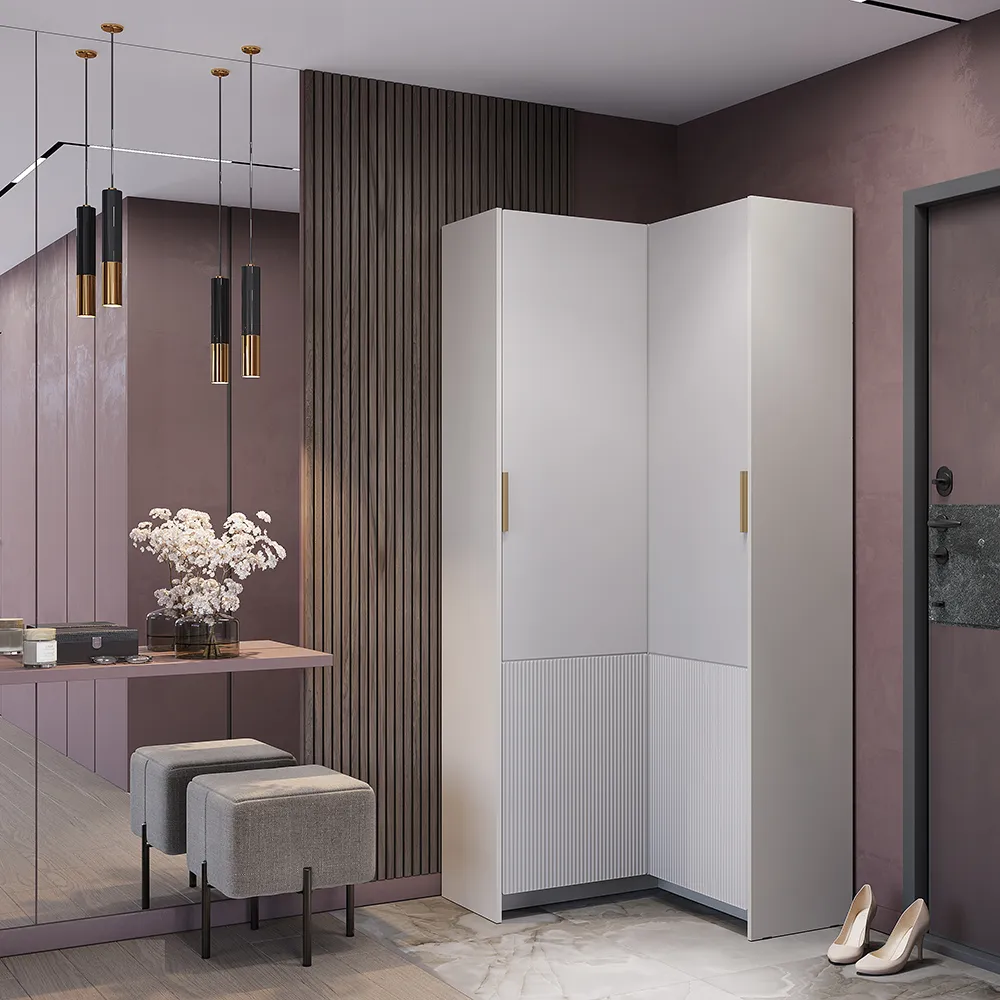 Почему это работает: Угловой шкаф использует пространство, которое обычно пропадает зря, позволяя хранить там объемные вещи: чемоданы, сезонную обувь, спортивный инвентарь.