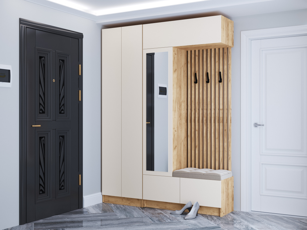 Забудьте о стереотипах. Вам не обязательно заказывать дорогую корпусную мебель по индивидуальным размерам. Современные готовые модульные системы — это и есть идеальный ответ для маленькой прихожей. Они позволяют «собрать» идеальную конфигурацию, которая вместит все необходимое, не загромождая пространство.