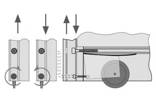 - Найдите регулировочные винты на верхних и/или нижних роликовых каретках.