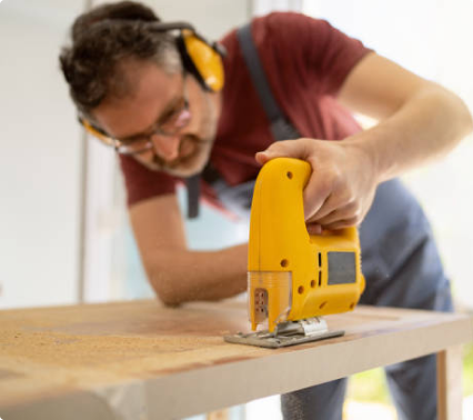 - Аккуратно выпилите отверстие электролобзиком. Двигайтесь строго по намеченной линии, не спеша.
