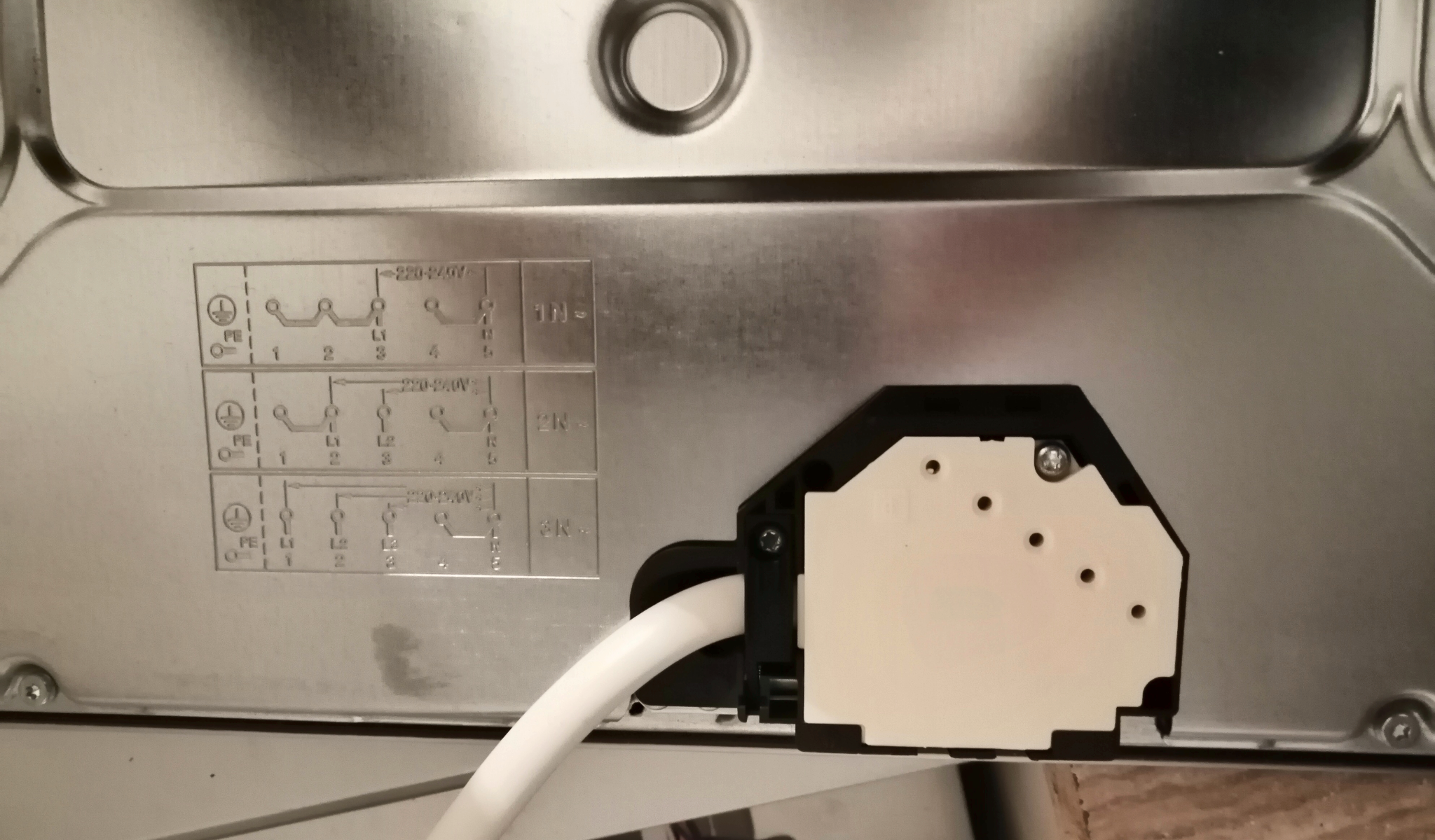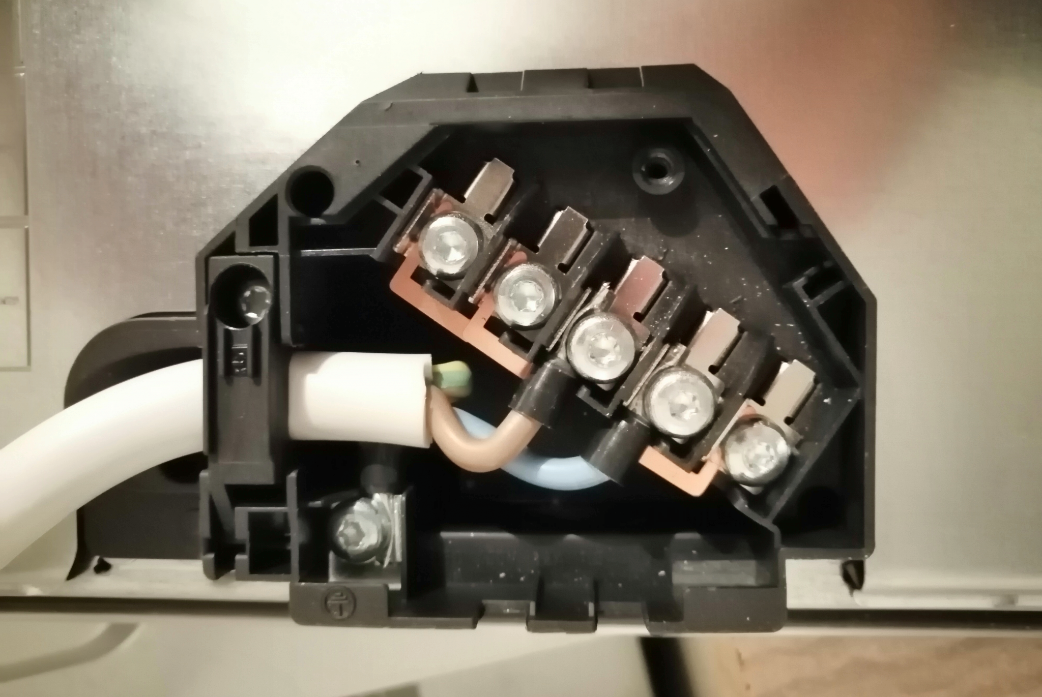 - Снимите защитную крышку с клеммной колодки на задней части варочной панели.