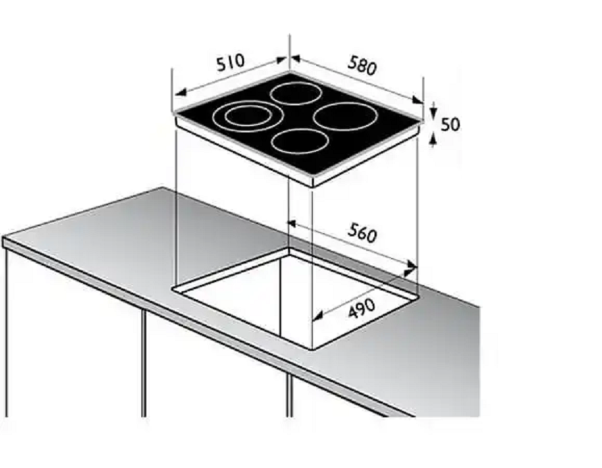 - Изучите инструкцию к варочной панели. Найдите там схему с точными размерами отверстия.