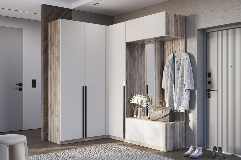 - Умные комоды и банкетки: С ящиками для аксессуаров и мягкими сиденьями для комфортного переобувания.