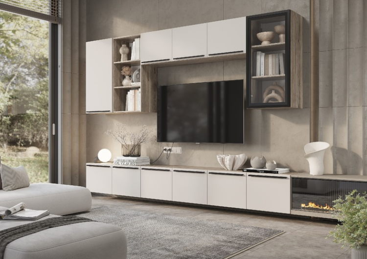 - Модульные системы: Состоят из напольных тумб, подвесных модулей и пеналов. Вы можете создать компактный медиа-центр или полноценную стенку во всю длину комнаты.